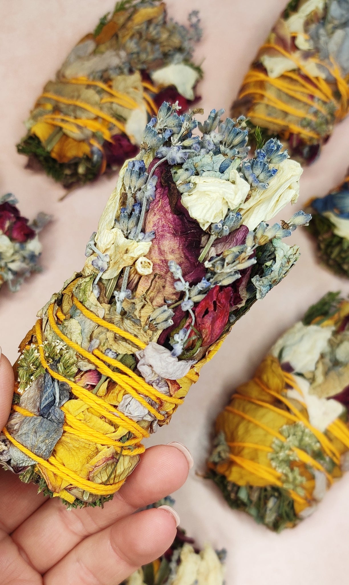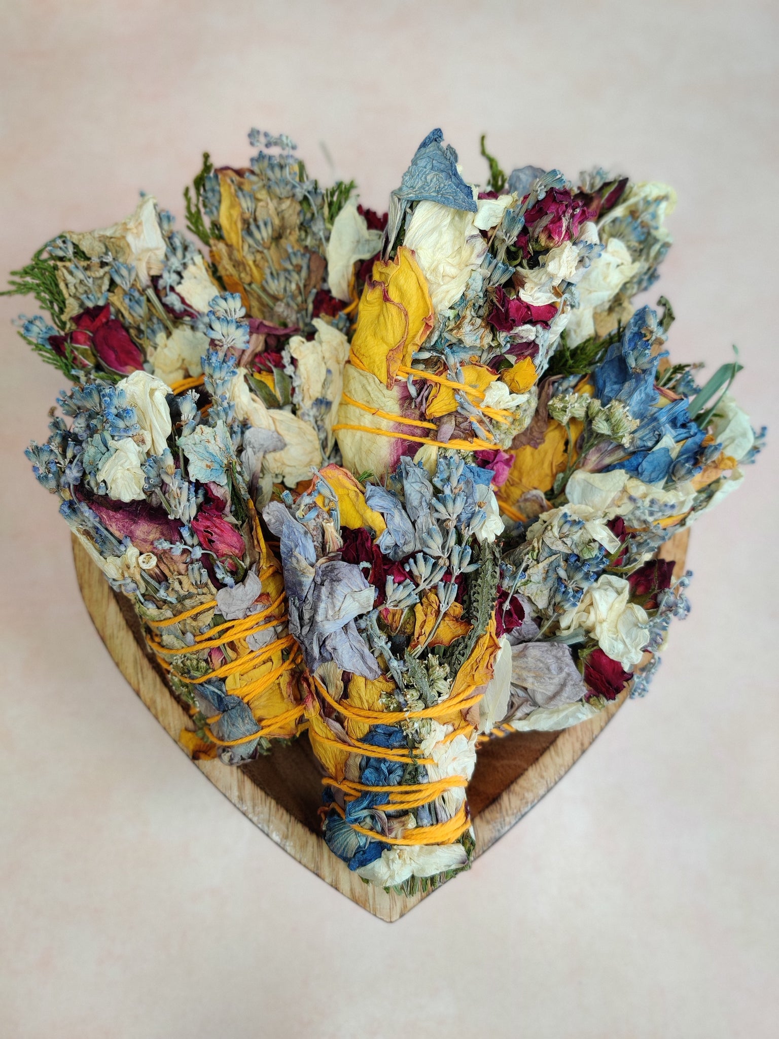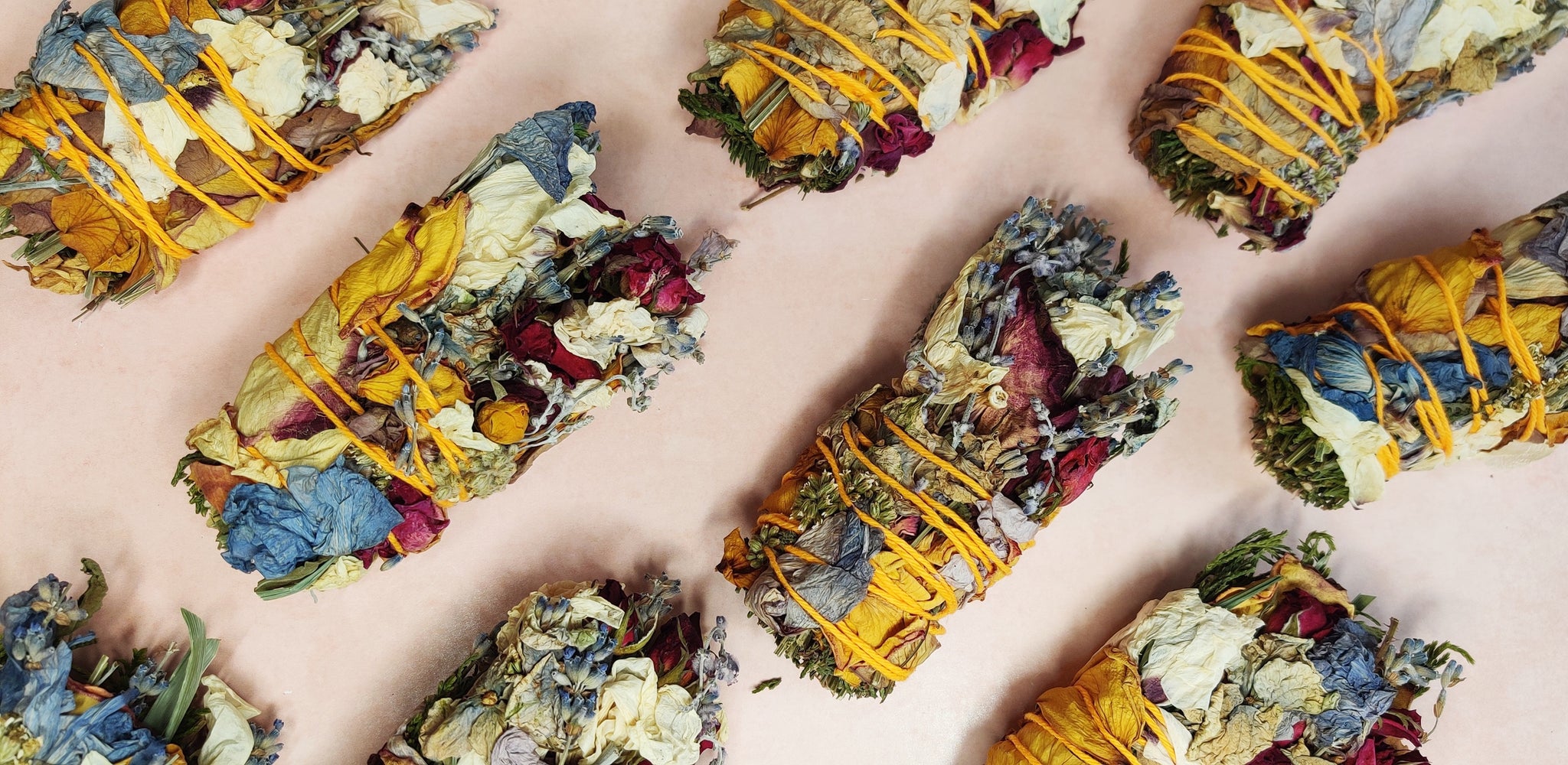 Celebrate impermanence with burnable botanical art! Ceremonial burning of bundled botanicals in a focused and intentional way is believed to release negative energy and to replenish positive, healing energy.